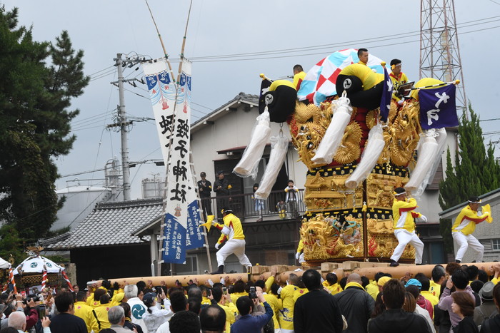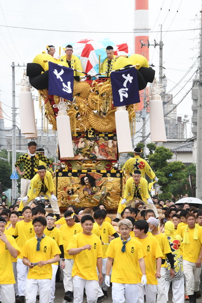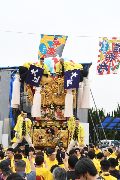 令和元年に太鼓台一式新調。 令和6年に上幕(大漁祈願幕)・中幕・化粧板(欄間彫刻)を新調。 一宮神社にて化粧板を御披露目<令和6年6月> |