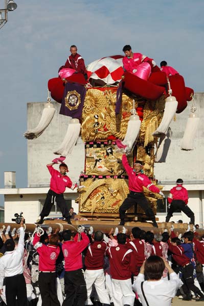 平成21年には、飾り幕のうち、布団締めと、上幕・高覧幕の禽獣幕と人物幕を大改修。当ホームページでは平成20年までの泉太鼓台を先代・太鼓台として紹介します。