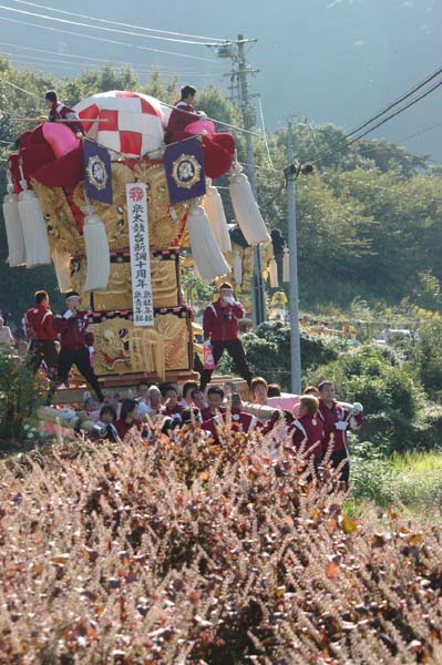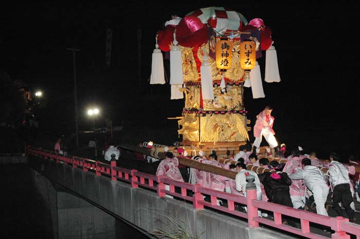 平成11年5月9日新調。 平成14年に括りを[黒]から[赤]に変更。 平成16年度は、高欄幕[阿形の飛龍]を[阿形の龍]に替えて出場。 泉自治会青年団手作りによる飾り幕だそうです。(※紅姫さん情報)