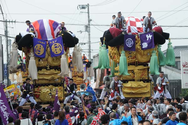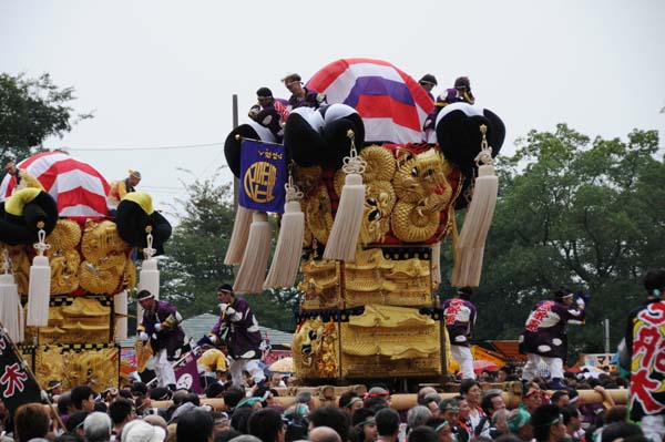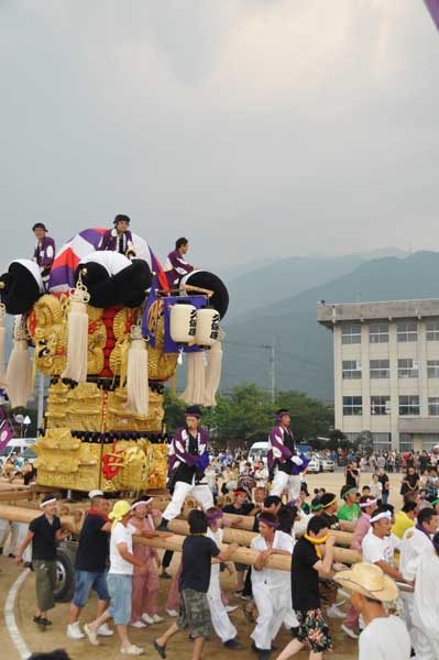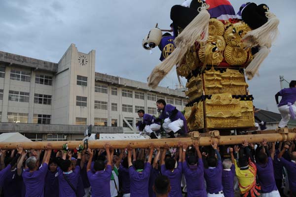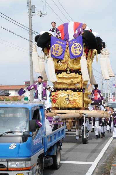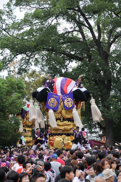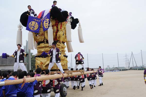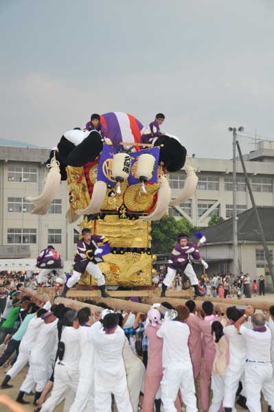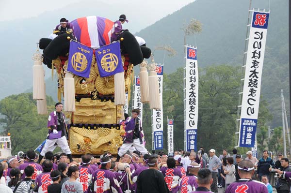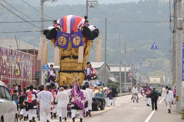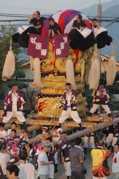 愛媛県新居浜市 上部地区 氏神:船木神社 飾り幕制作 吉田縫師 平成14年まで新居浜市船木地区高祖太鼓台として運行。 高祖地区より太鼓台一式を購入し、平成15年御披露目。