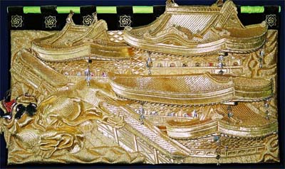 藤野縫師の指導により下本郷自治会で制作。 高欄幕の「獅子と城郭」は、新居浜太鼓台の書籍によると日本武尊白猪退治となっています。