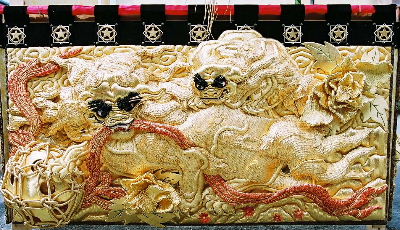 高欄幕 石清水神宮と吽形の獅子 |