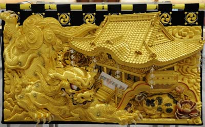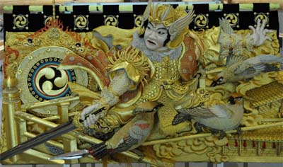 上幕 神輿舎と天女と獅子 神輿舎(しんよしゃ)の天井に描かれた天女を再現 |