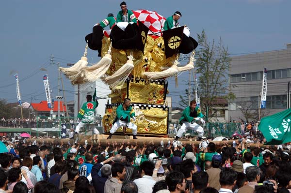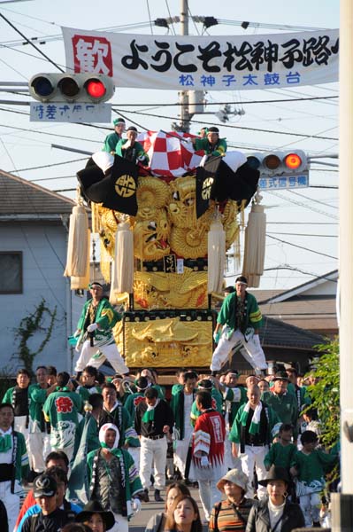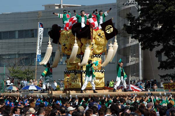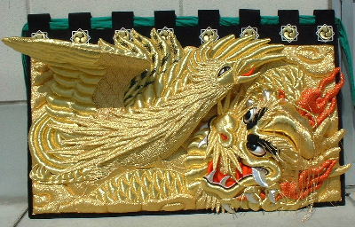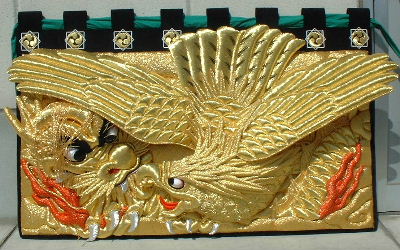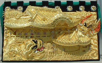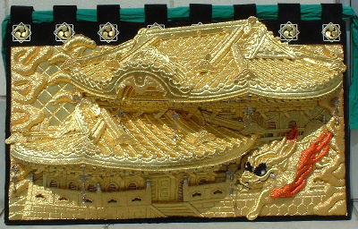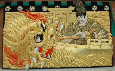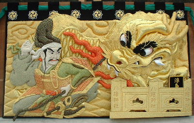 高欄幕 龍と船に乗った源頼朝 (八旛神社一の鳥居) |