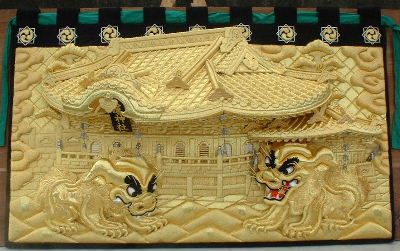 高欄幕 八旛神社と阿吽の獅子(狛犬) |