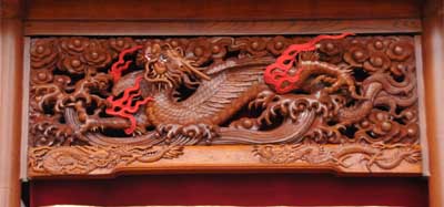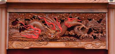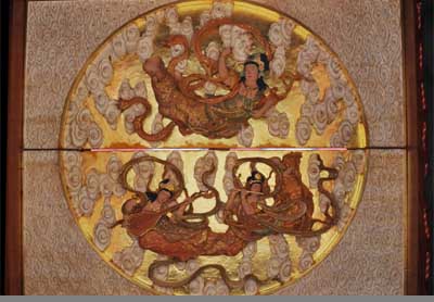 上幕(正面) 飛龍 小早川の弔い舞(とむらいまい)によって、元宅が飛龍になって昇天している様を描いています。 |