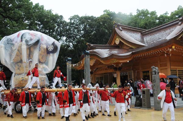 金栄校区に属する地区の氏神のうち、一宮神社(西の土居町・高木町)、滝神社(滝の宮町・政枝町)、浦渡神社(坂井町)へ奉納。