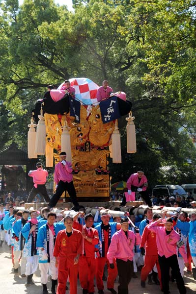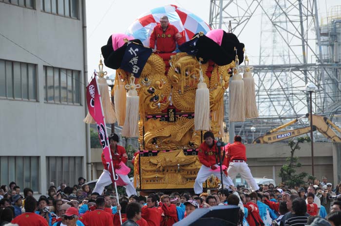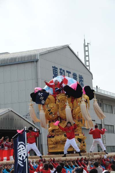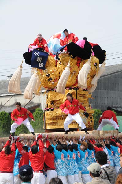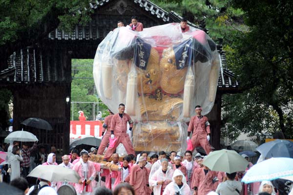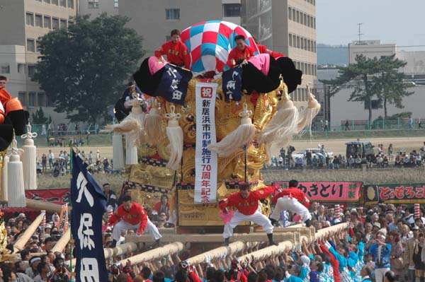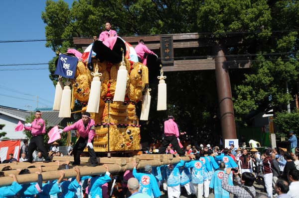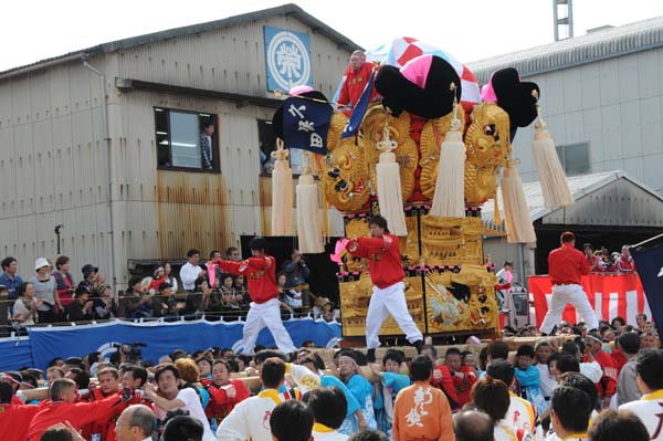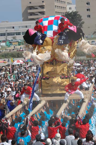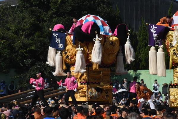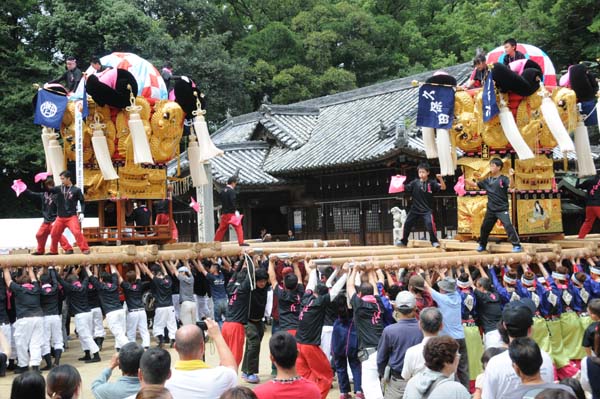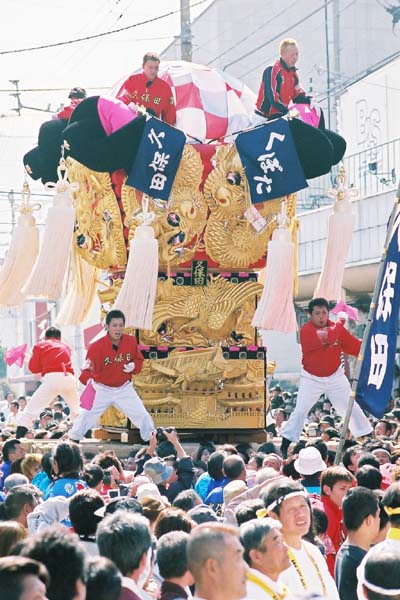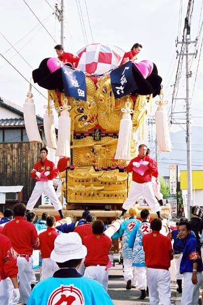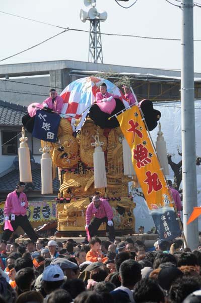 ![]() 先々々代・太鼓台布団締め (平成14年10月撮影/坂出市 先代・宮下太鼓台) |
