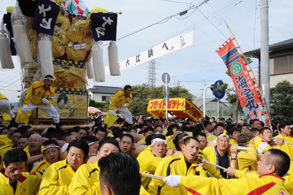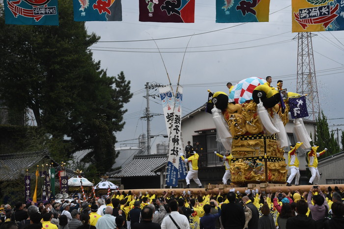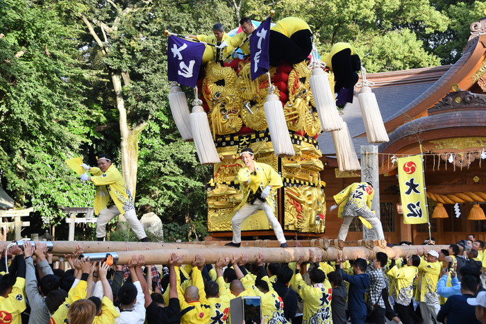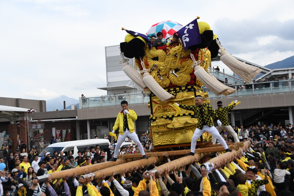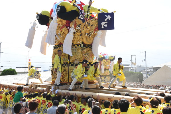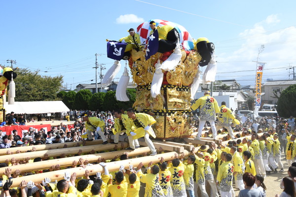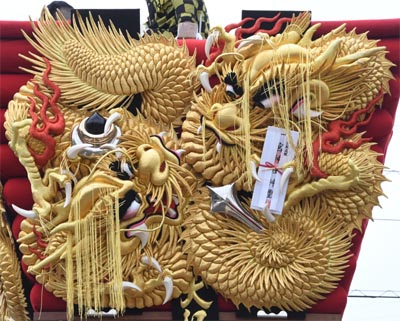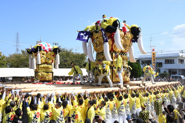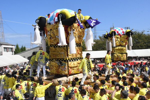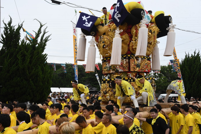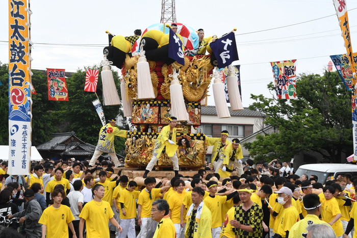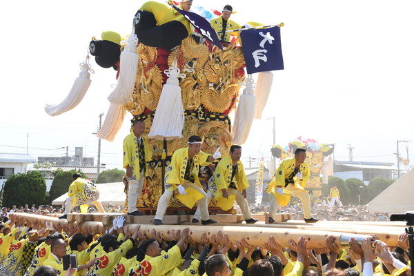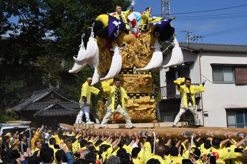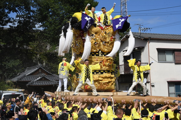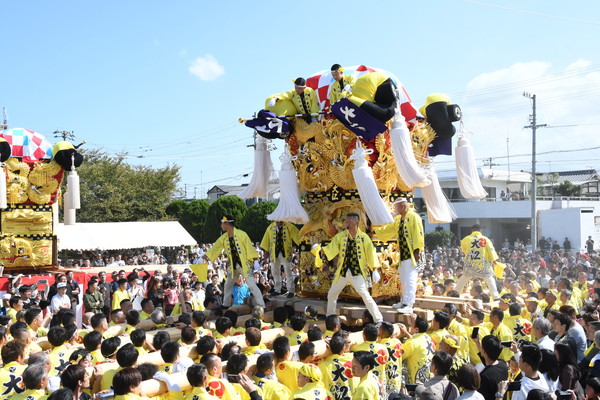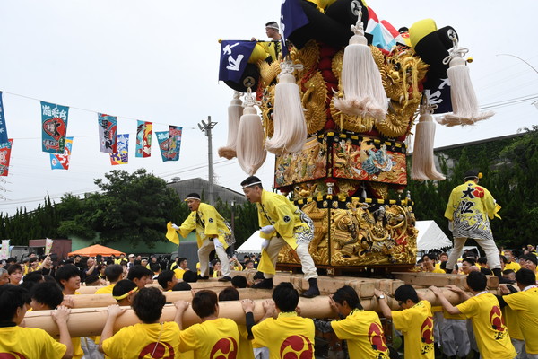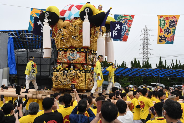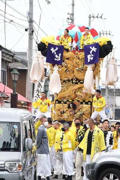 令和元年に太鼓台一式新調。 令和6年に上幕(大漁祈願幕)・中幕・化粧板(欄間彫刻)を新調。 一宮神社にて化粧板を御披露目<令和6年6月> |