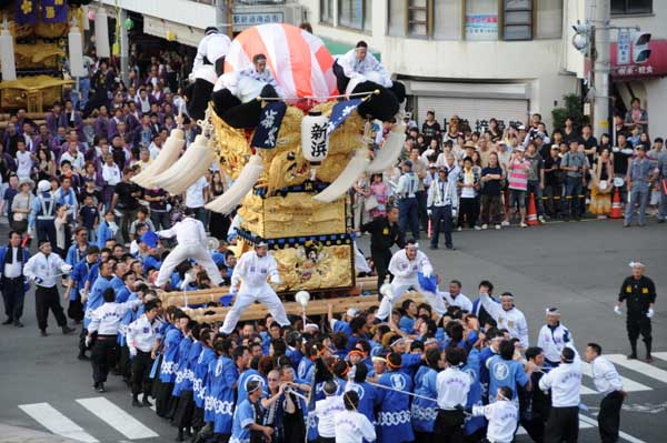 先代・新浜太鼓台は昭和3年に愛媛県新居浜市田之上太鼓台を購入して平成5年まで運行。 |