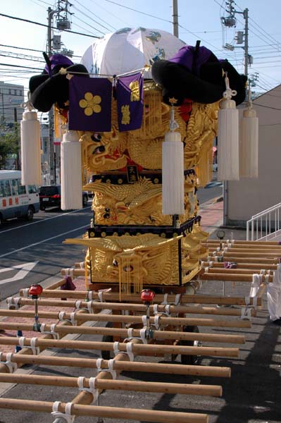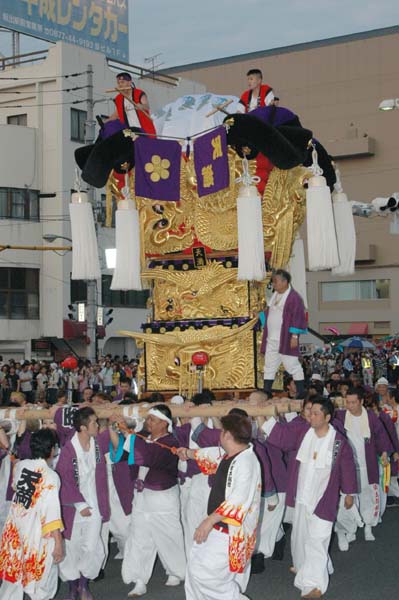 先代・天満太鼓台は香川県三豊郡山本町の先代・大辻太鼓台を購入。 平成4年頃より平成7年まで使用し、香川坂出市の醍醐北地区へ売却。 醍醐北太鼓台として平成9年頃より平成14年頃まで運行していました運休。 平成17年より醍醐北地区から香川県三豊郡豊中町の親睦会太鼓台へ流出したようです。 |