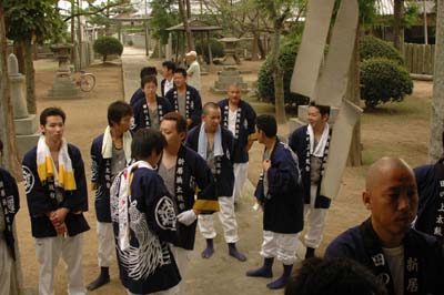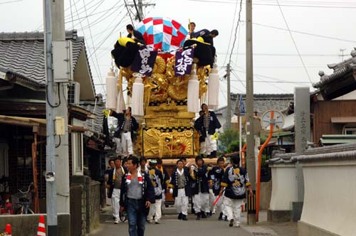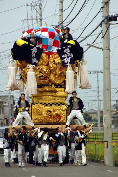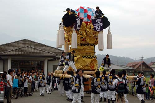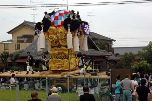 太鼓台を止めて、皆で食べました。
