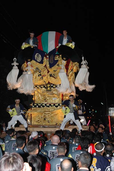 同じく高津小学校での夜太鼓を終えた東雲太鼓台と合流 |