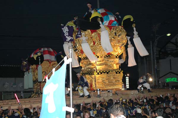 新居浜祭り最終日10月18日に田之上太鼓台と町太鼓台が、榎之本広場にて鉢合わせ。