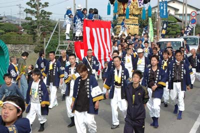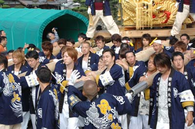 そして川東地区太鼓台は「多喜浜駅前かきくらべ」に合流。 川東西部地区の太鼓台は入場を終えています。 |
