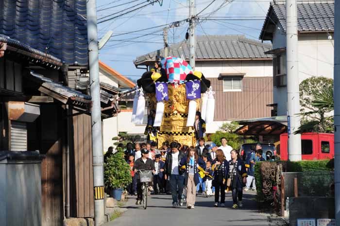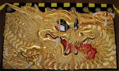 田之上子供太鼓台を30年ぶりに一式新調しました。 飾り幕は、大人太鼓台と同じく金鱗で製作。図柄は大人太鼓台と同じです。 午前10時より田上神社で御披露目式典、午後は田之上地区内を運行。 |