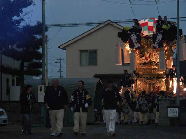 早朝5時 早朝宮出のため運行開始。太鼓蔵から榎之本広場へ向け出発した。 |