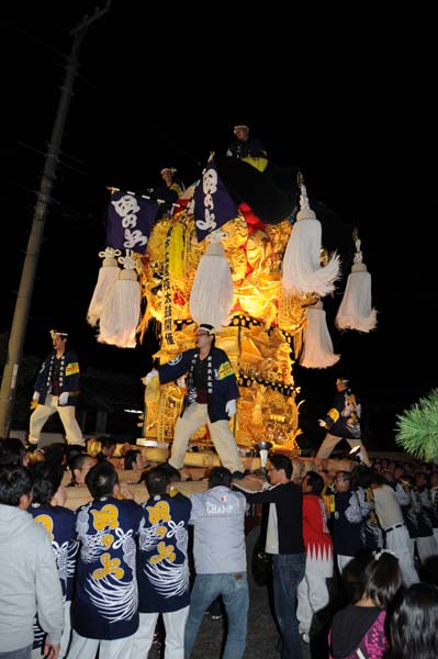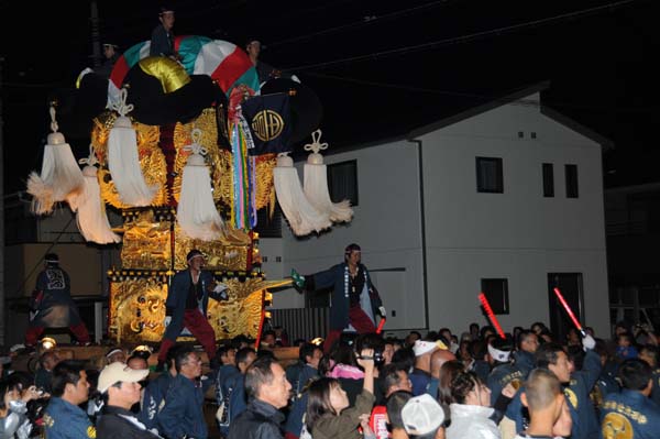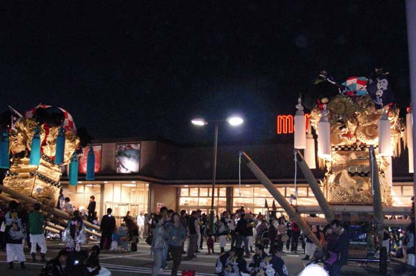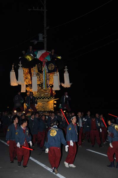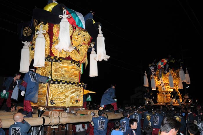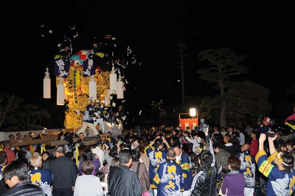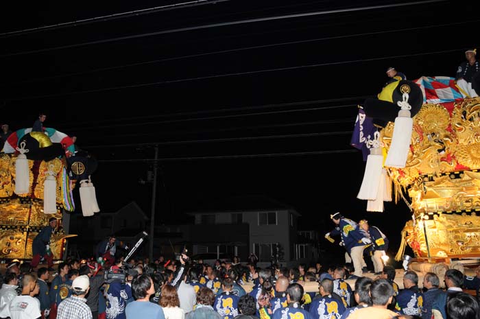 宇高太鼓台と端缶合わせの御挨拶で、祭り初日が終わりました。 |