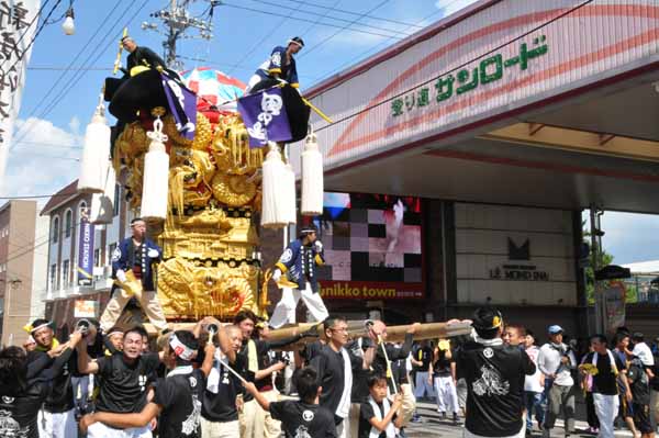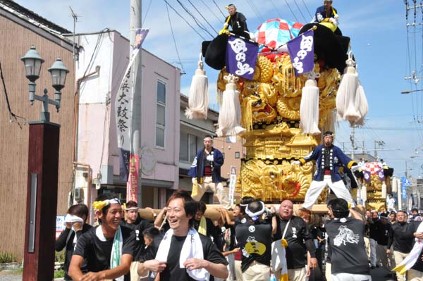 阿島太鼓台は、同じ運行グループの関太鼓台・おんな太鼓台と合流、中須賀花園商店街へ |