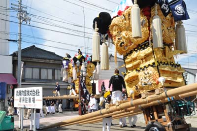 庄内太鼓台の組み立て位置まで運行。 庄内太鼓台は同じ運行グループになる西町太鼓台と合流すべく登り道方向へ運行開始。 |