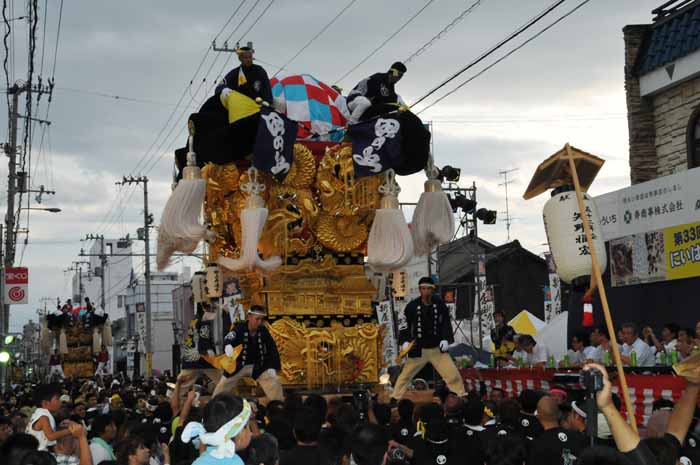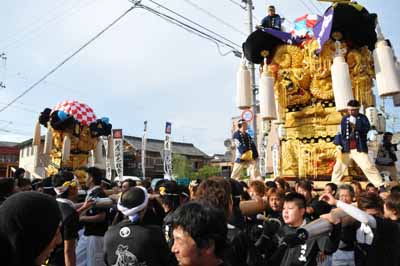 田之上太鼓台は同じ運行グループの松乃木太鼓台と合流し端管合わせ |