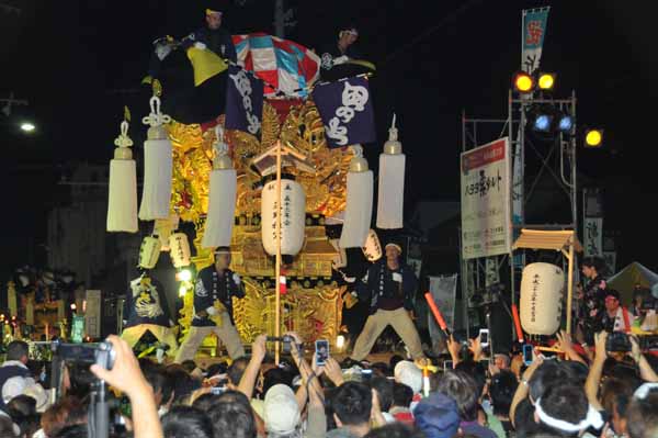 19時から本部前で「かきくらべ」開催 午後20時 ようやく出番となり気勢をあげる田之上太鼓台 |