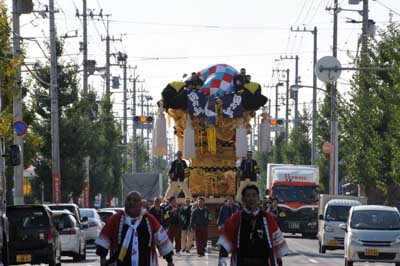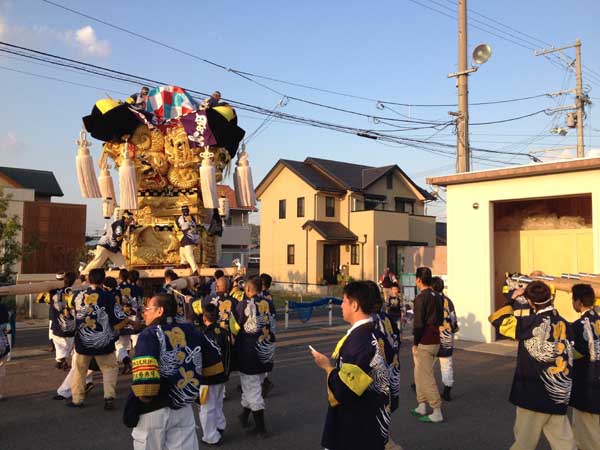 お祭り集会終了後、子供太鼓台を運行していると |