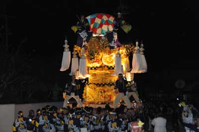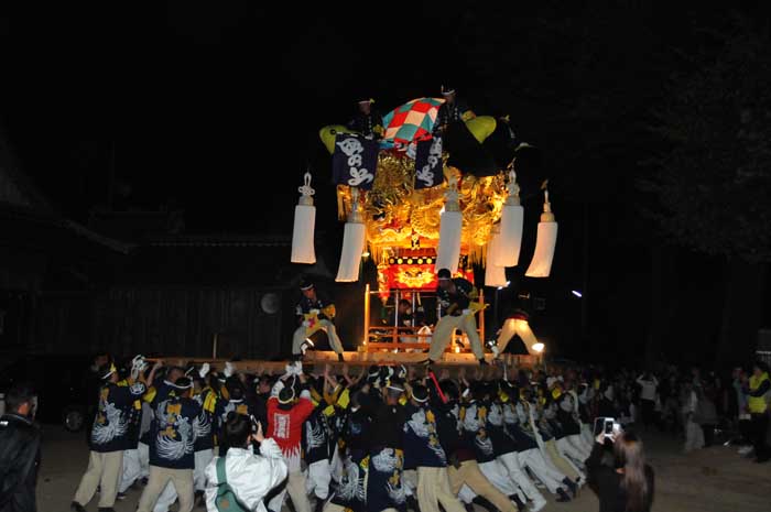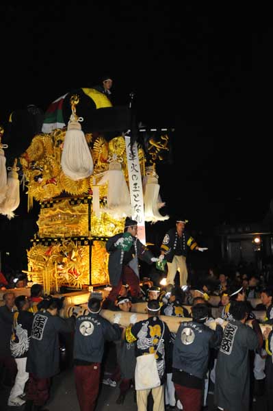 19時半、田上神社宮入。差し上げますが、あともう少し。 |