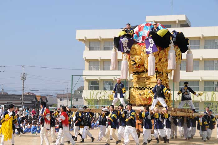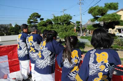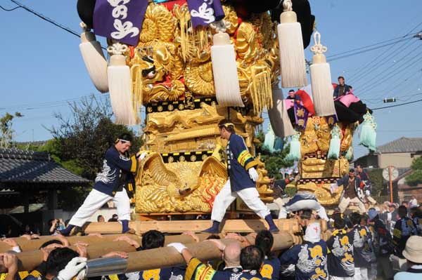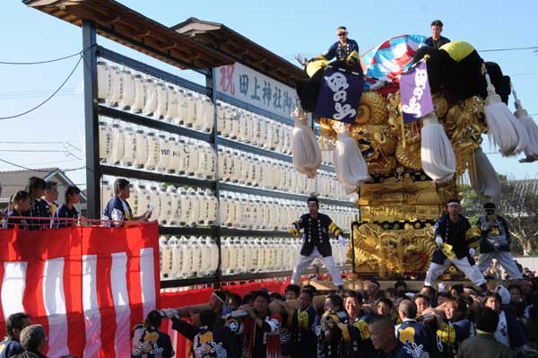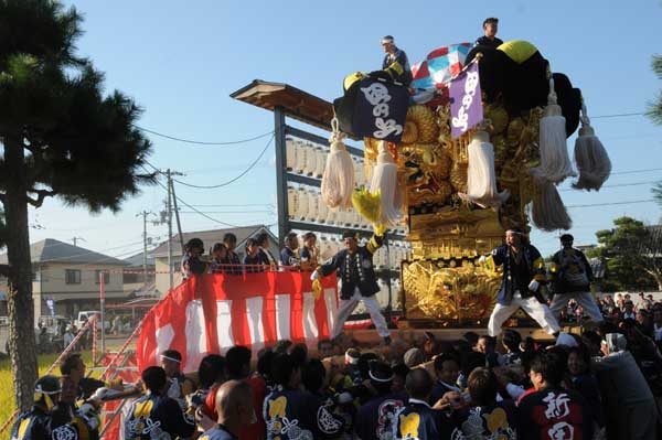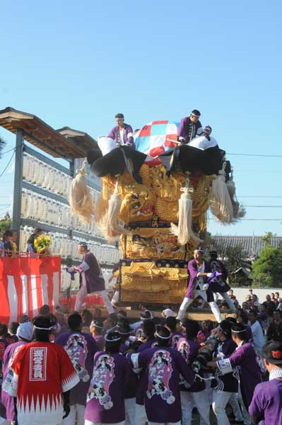 | 方向転換をして入場してくる太鼓台を迎えます | ||