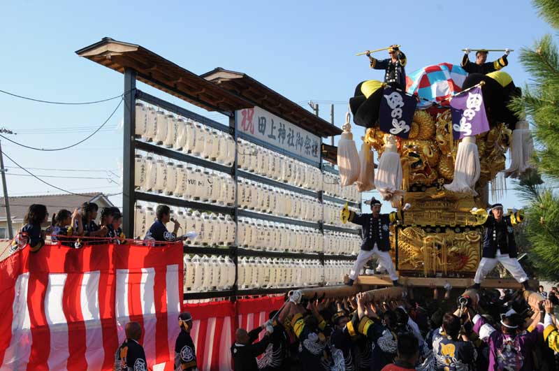 楠崎太鼓台・下郷太鼓台・又野太鼓台の順に、田之上太鼓台は4番手で入場 今年の担き上げは楠崎太鼓台でした