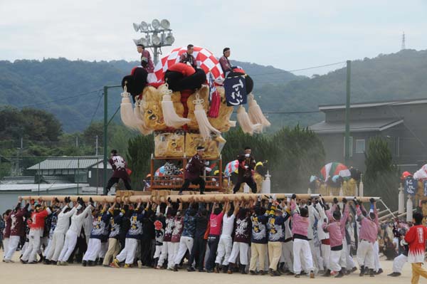川東地区太鼓台より入場開始、3番手で入場してきた田之上太鼓台 |