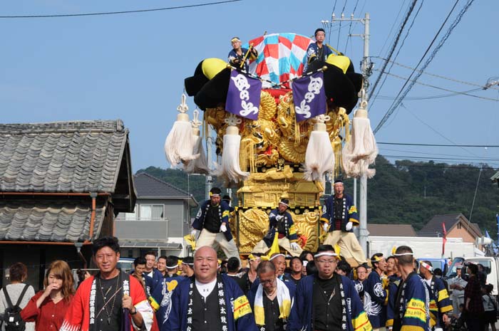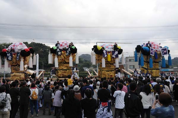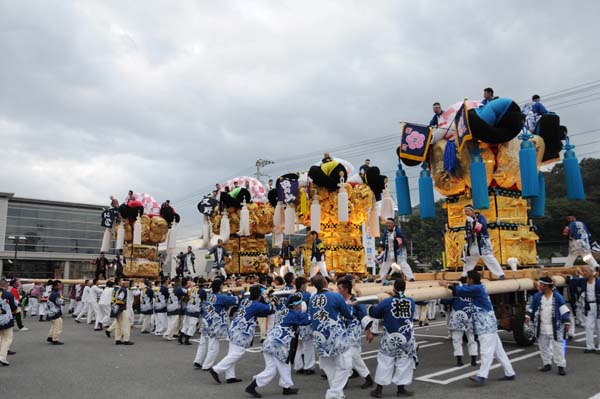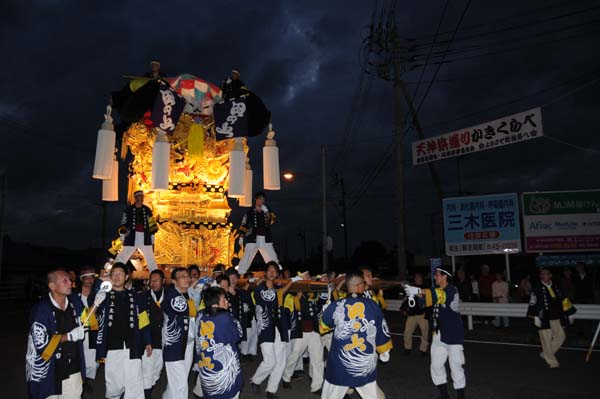 | 17時、田之上太鼓台・楠崎太鼓台は「天神浜かきくらべ」にむけ出発 | ||