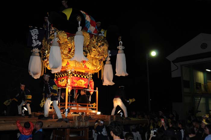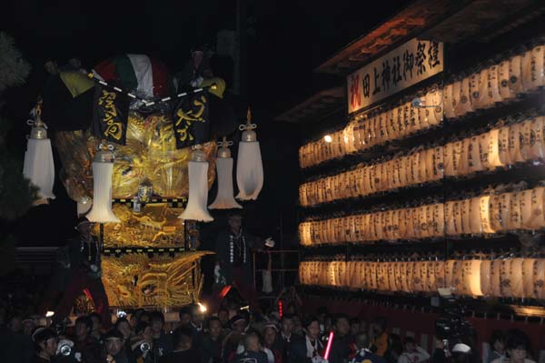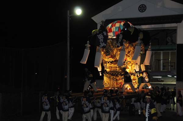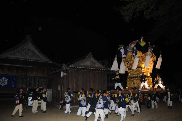 22時、ようやく田上神社へ戻ってきた田之上太鼓台 |