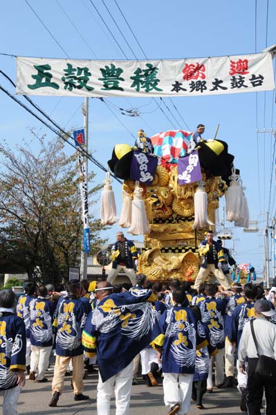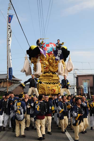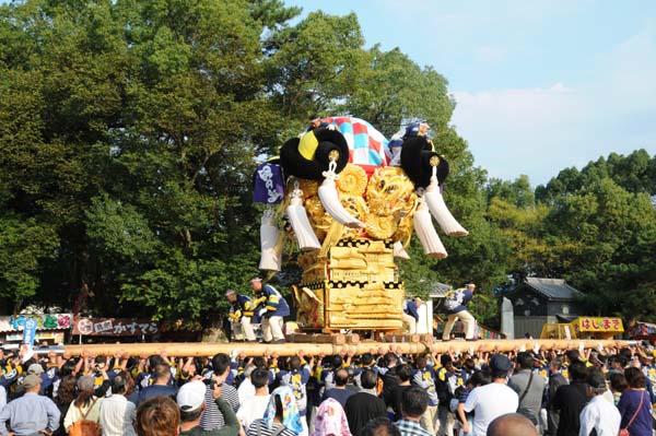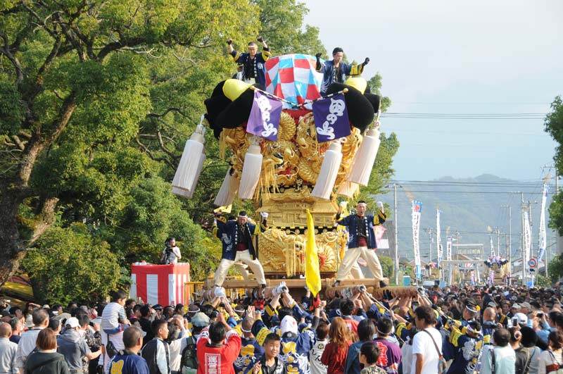 実に3年ぶりの八旛神社宮入、気勢あげ差し上がる田之上太鼓台 |