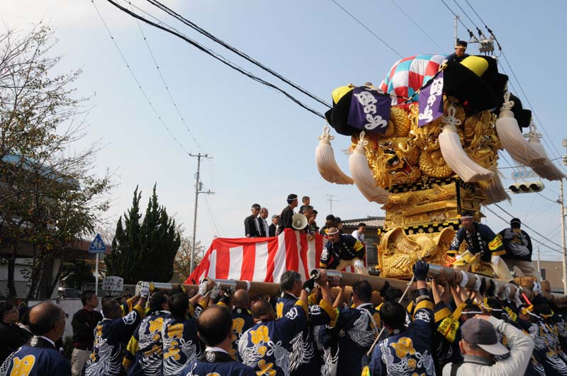 午前は早朝より統一行動に参加し多喜浜地区を運行 午後から八旛神社宮入にむけて出発 |