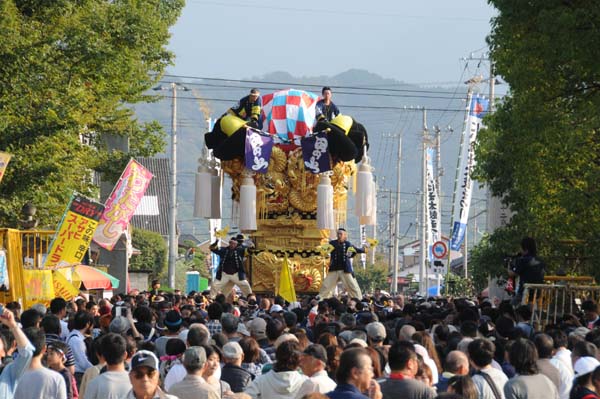 14時20分頃より川東地区太鼓台の宮入開始 15時15分頃、5番手に入場開始した田之上太鼓台 |