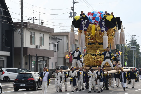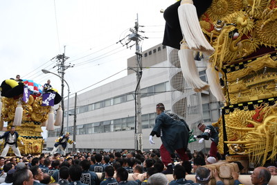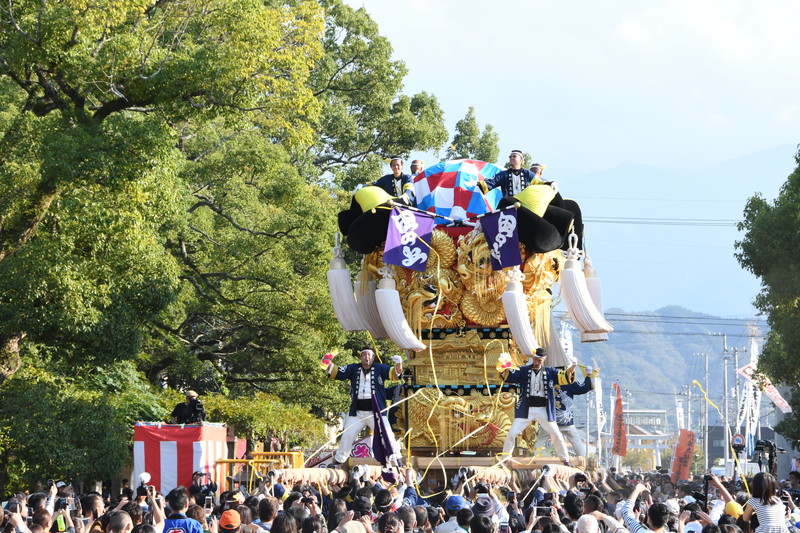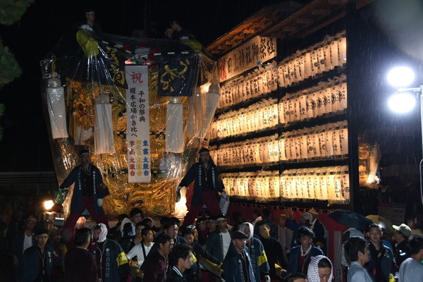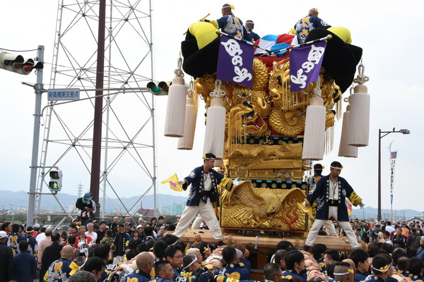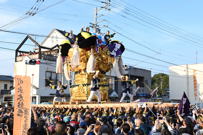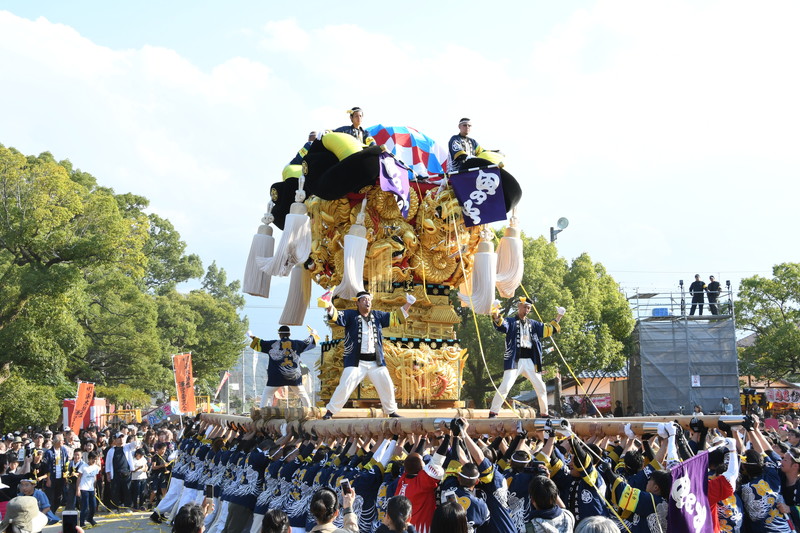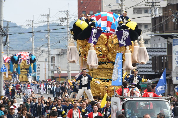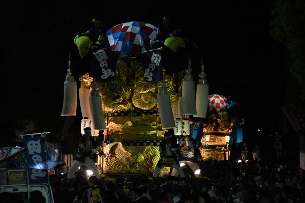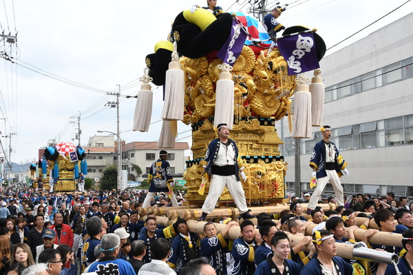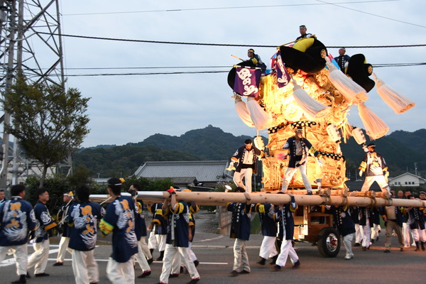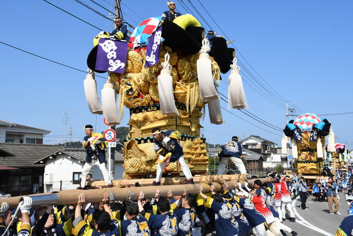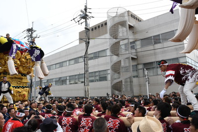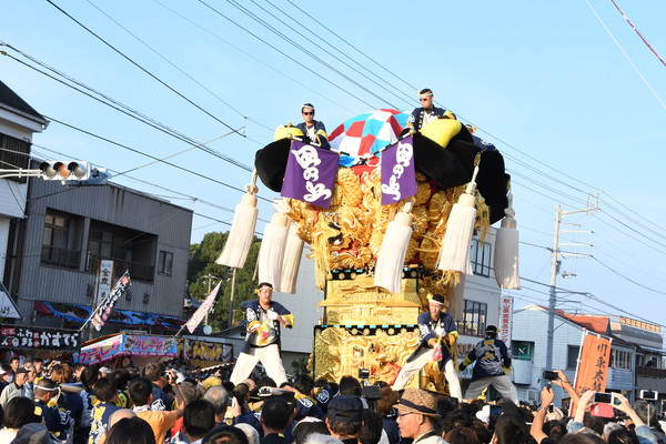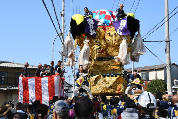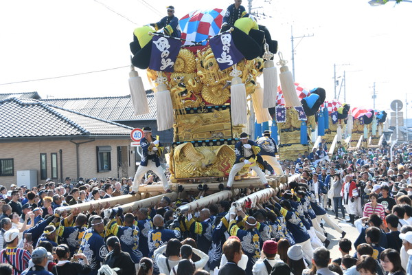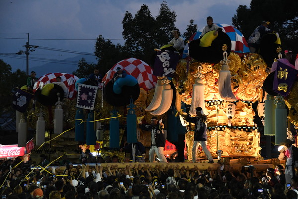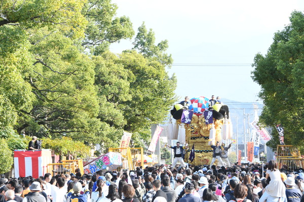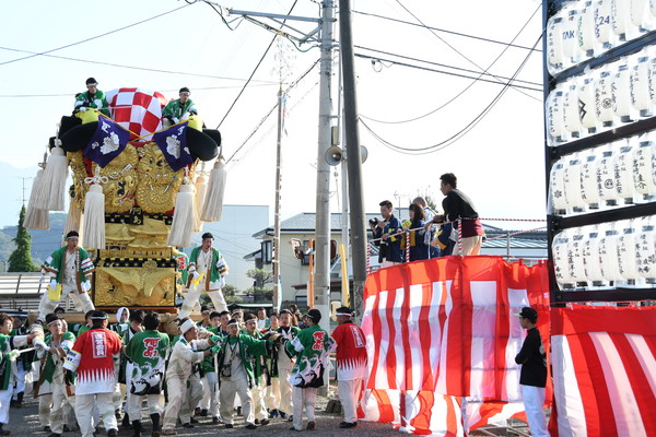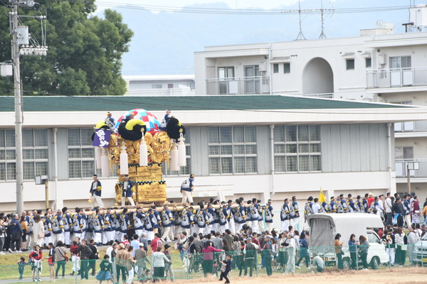 ![]() 午後、川東地区の太鼓台が田之上入り |