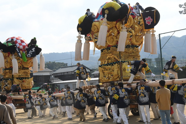 ![]() 宮入り前の東雲太鼓台とお別れ |