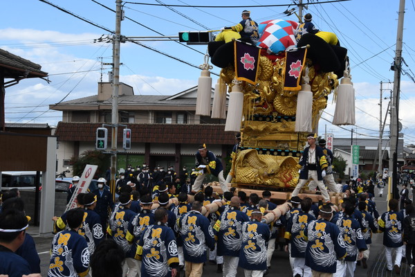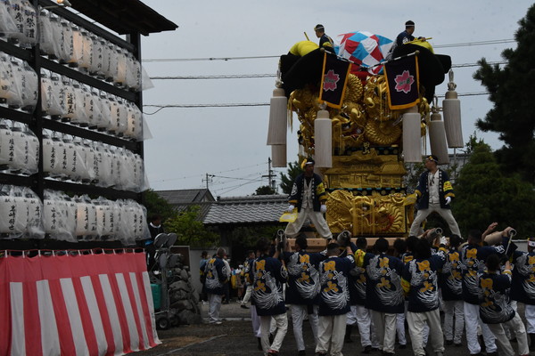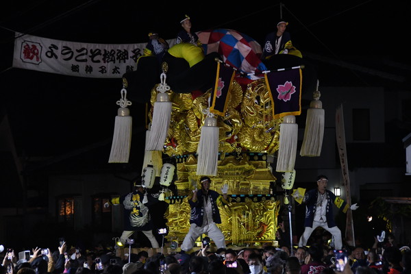 ![]() 今年の八旛神社宮入りは2部制、川東地区は川東西部地区の宮入り前に退場 |