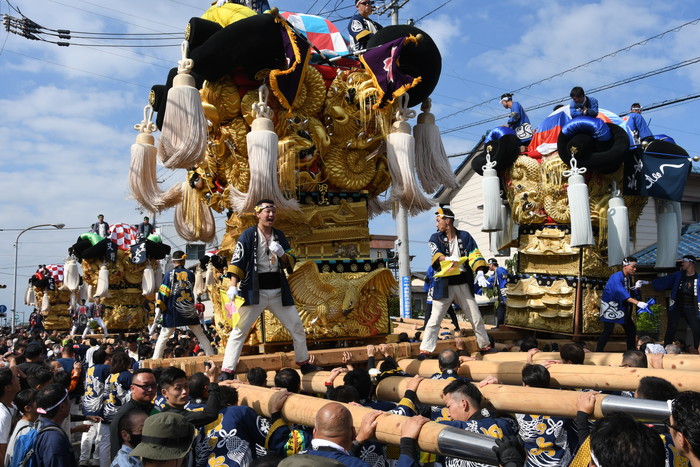 ![]() 澤津太鼓台・東雲太鼓台と宇高地区の方も入り、田之上太鼓台を差し上げ |